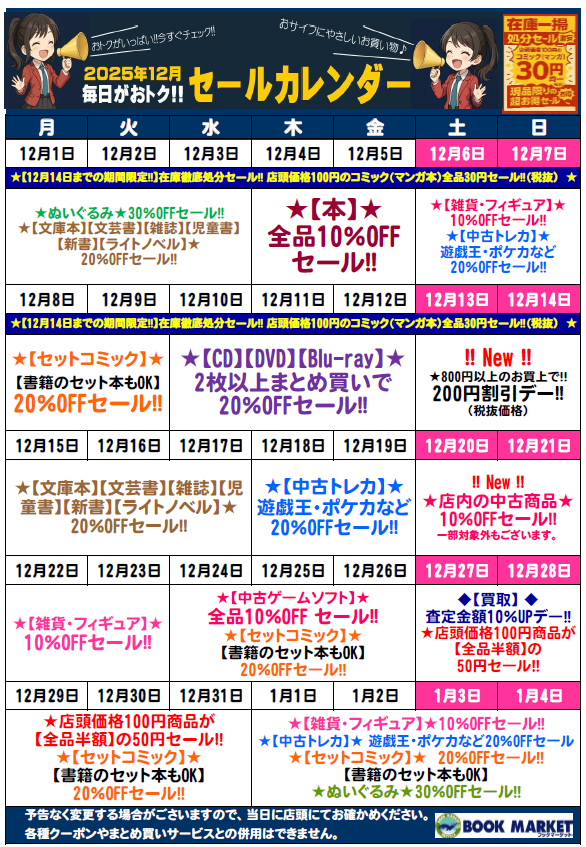 2025年12月 セール&イベント情報!!